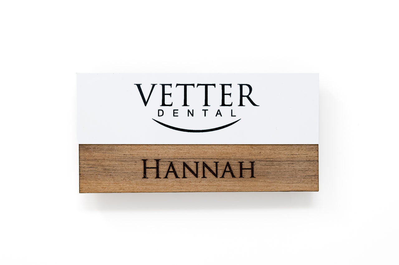 Free text and full logo personalization on all wooden name tags - send us your logo and we will take care of the rest!