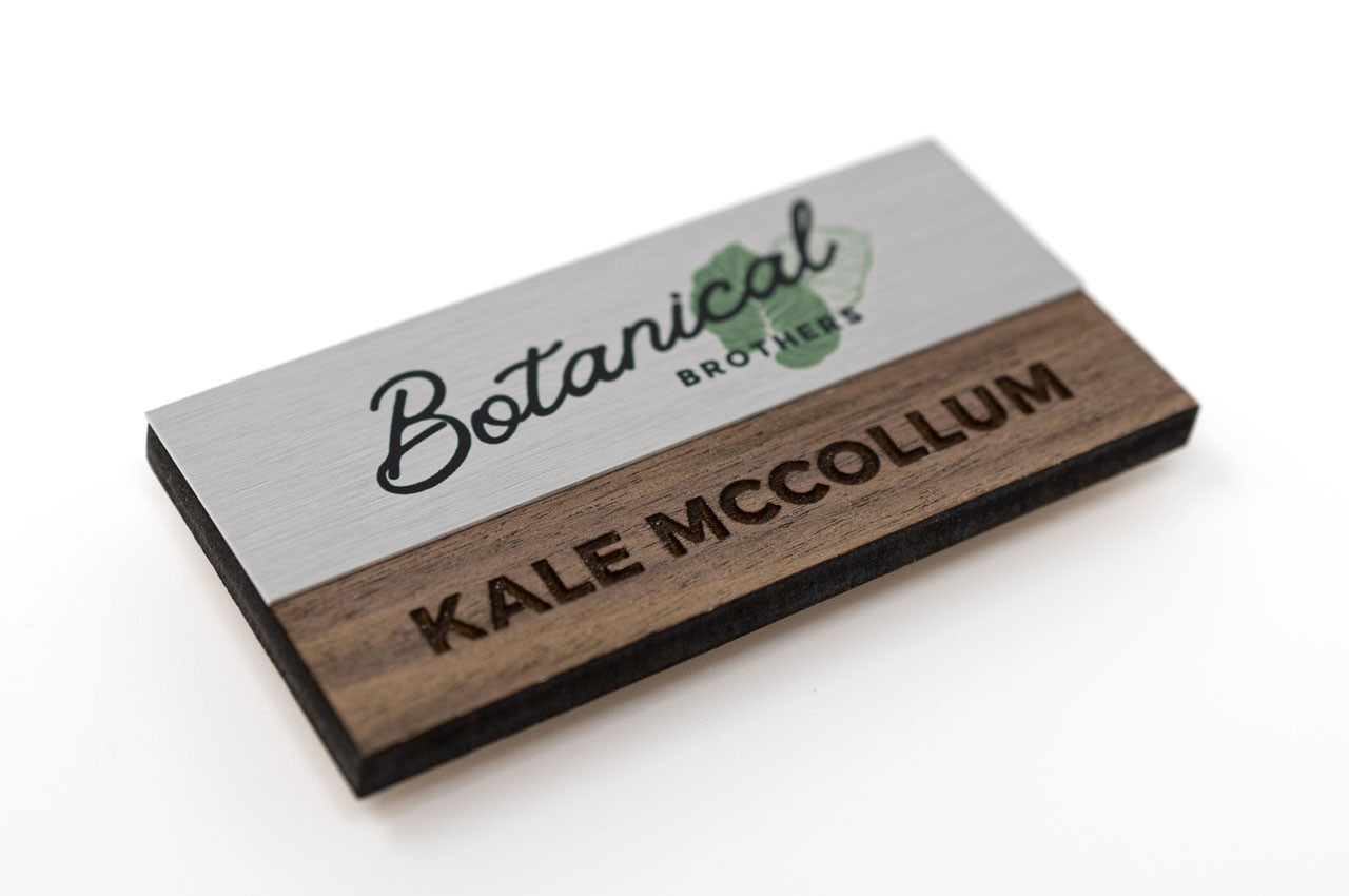 - A Professional Name Badge with Real Wood and Metal Accent