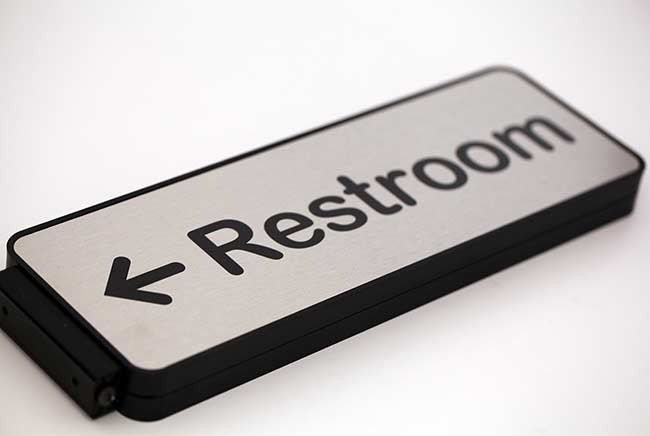 Show the way with our two-sided corridor directional signage. Custom 12"x4" easy-mount flag with easy mount metal wall bracket and durable black molded frame - choice of nameplate colors. Use the PERSONALIZATION fields on this page to customize your signs at no extra charge.