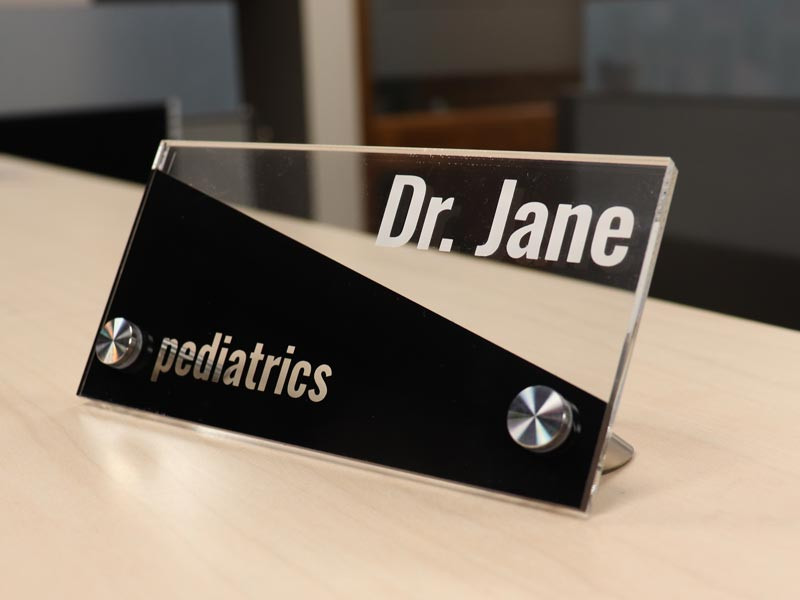Clear Acrylic Desk Office Sign - Custom Vinyl Desk Name Plate