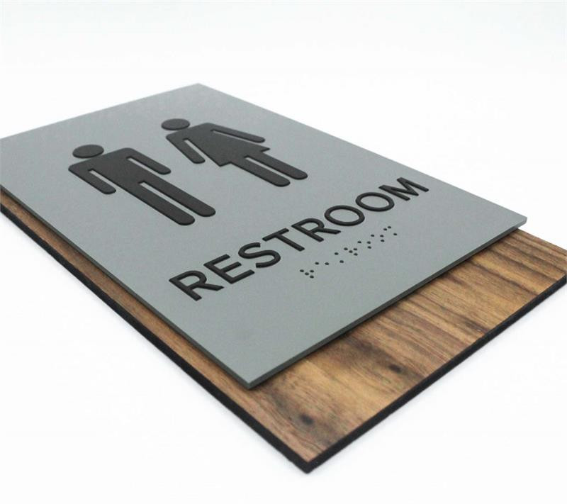 - Contemporary Restroom Signs in Braille with Walnut Wood