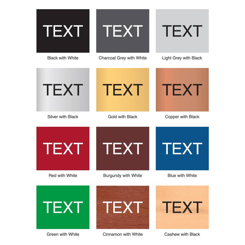 Click Here to view the complete list of Custom ADA Sign color choices. -