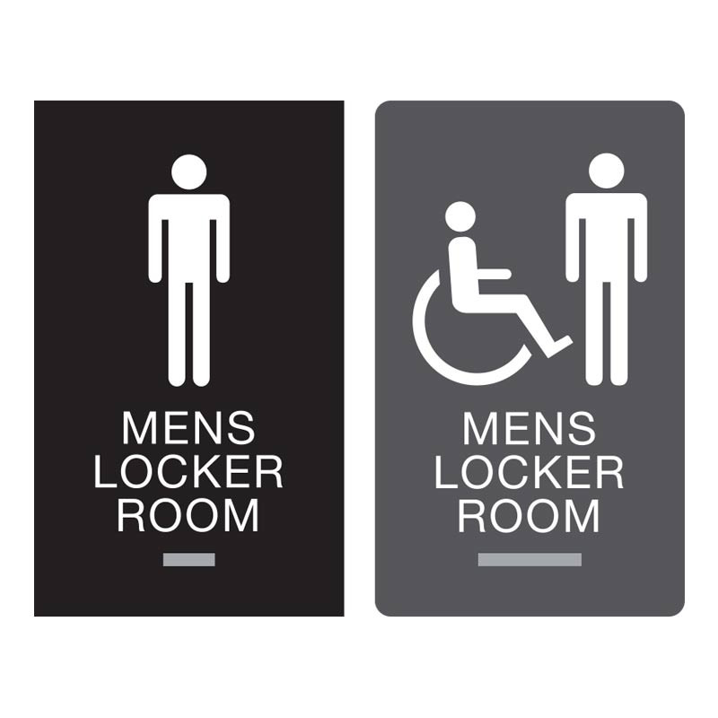 1/8 thick acrylic Mens Locker Room sign includes ADA compliant 1/32 tactile (raised) lettering and Grade 2 braille graphics. Properly guide students, members or guests to the proper locker rooms, with ADA Compliant Braille Office Signs.