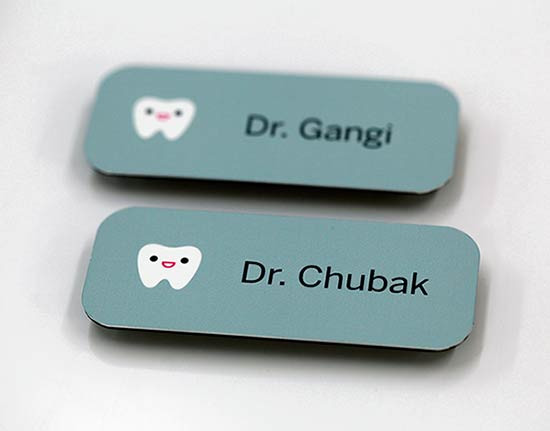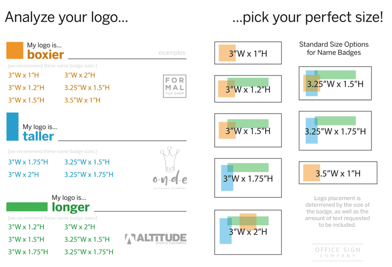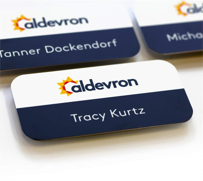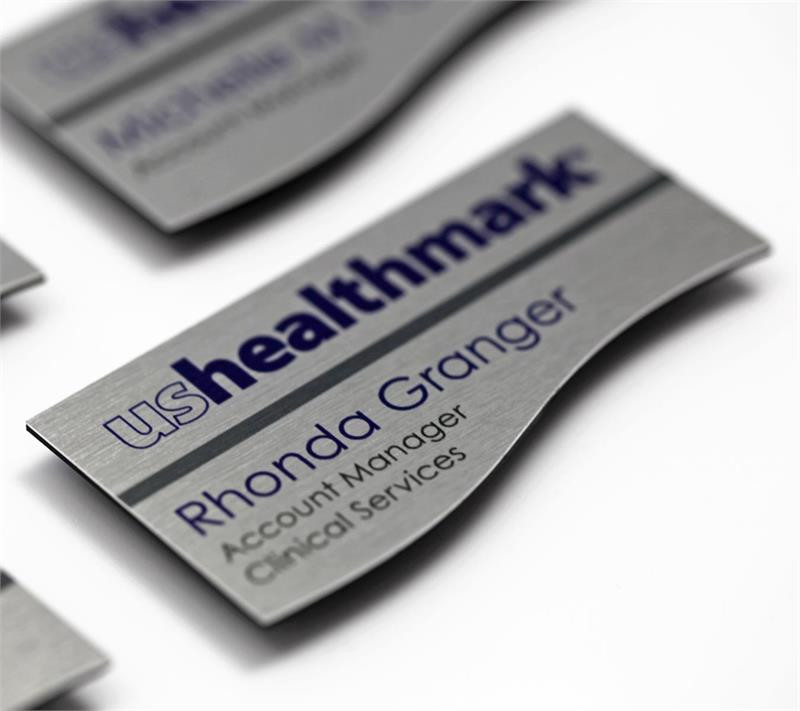 All name tags come with free text and full logo personalization. Call, chat or email us for name badge & name tag plate color choices, custom sizes.