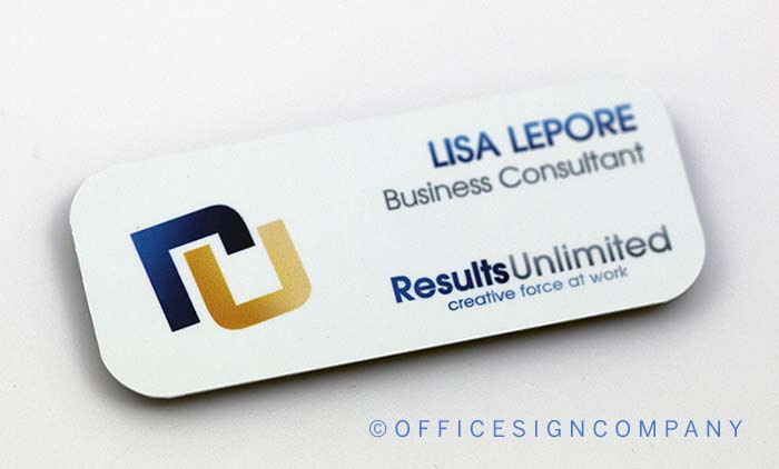 Note: Our magnets and pin backers contain nickel. If you have a metal allergy, contact us for an alternative solution. Email us at service@officesigncompany.com or call us at (701) 526-3835.