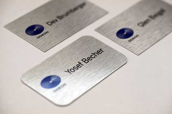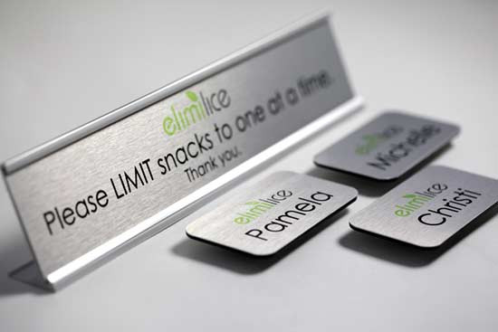 Ordering is simple just select your size, aluminum plate color, corner style and mounting option. Then, personalize your name tag, and if desired, send your special instructions/logos to service@officesigncompany.com as noted in the product options.