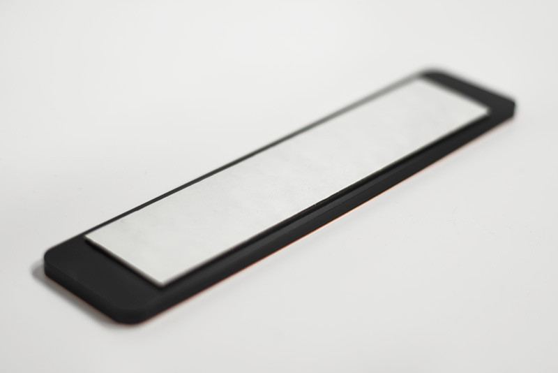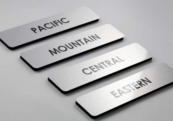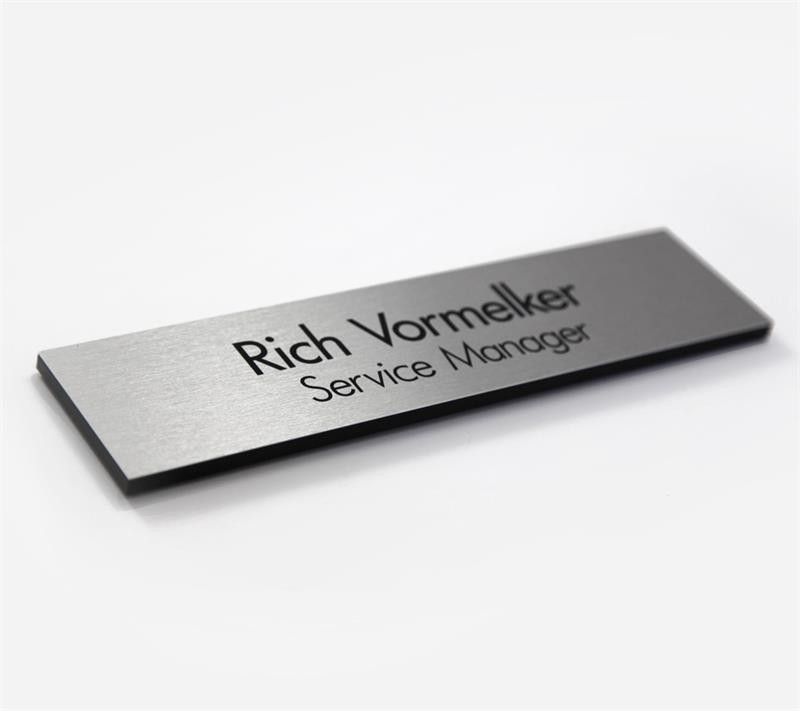 Our contemporary office sign designs feature a rich black 1/4" thick flush-mount backer to give your signs a hint of depth and style. Ideal for office doors and employee name plates, medical waiting room signs, doctor's offices, room numbers, employees only signs, no cell phone signs and anything you can think of!