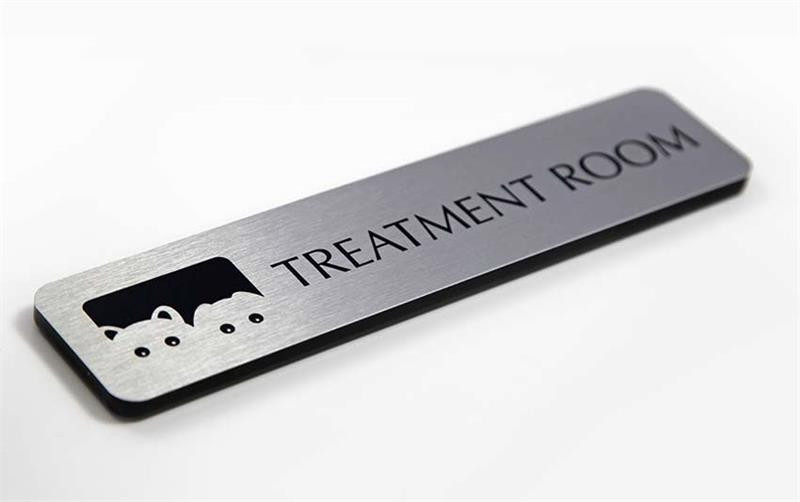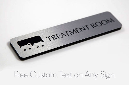 A clean look for any office, cubicle or interior wall. Custom office sign includes permanent custom lettering and brushed metal color choices for both the sign plate and the frame - at no additional charge. Easy to hang, easy to wipe clean. Add any text you desire for your room name signs, conference room sign or exam room signage. Free personalization and corporate logos on all name plates.