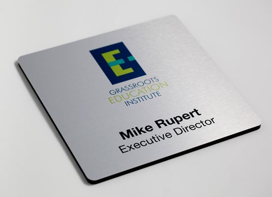 A professional look for any office, cubicle or interior wall. Custom office sign includes permanent custom lettering and brushed metal color choices for the sign plate - at no additional charge. Easy to hang, easy to wipe clean. Add any text you desire for your office, conference room, closet and so on. Free personalizations and corporate logos.
